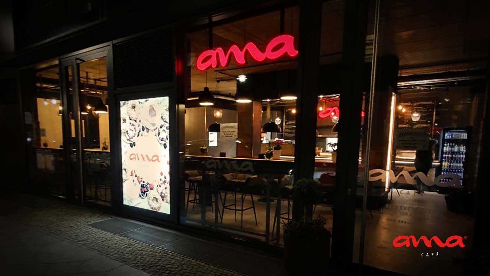 Das ama Café Berlin lädt Sie ein, die köstlichen Kaffeekreationen in unserem einzigartigen Café zu probieren. Zugleich bieten wir eine große Auswahl an leckeren Bagels und Frühstückvariationen sowie wechselnde Monatsspecials. In gemütlicher Amosphäre bei kostenlosem WLAN können Sie Ihren ama Kaffee genießen und entspannen. Unser einzigartige Röstaroma wird Sie überzeugen. Entdecken Sie die Welt rund um den leckeren ama Café. Wir freuen uns auf Ihren Besuch.